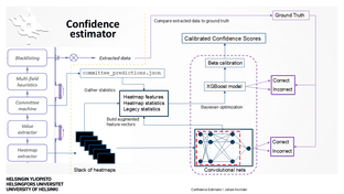 The confidence estimator used in the case study is a hybrid system using convolutional neural networks and statistical analysis to derive comparative features from a stack of heatmaps, which originate from the Basware distillation pipeline. These features are fed to an XGBoost model, which learns to assign a confidence score indicating whether the ensemble of models within the Basware pipeline made a correct prediction or not. Finally, these confidence scores are calibrated using a Beta calibration mapping to match with empirical probabilities.